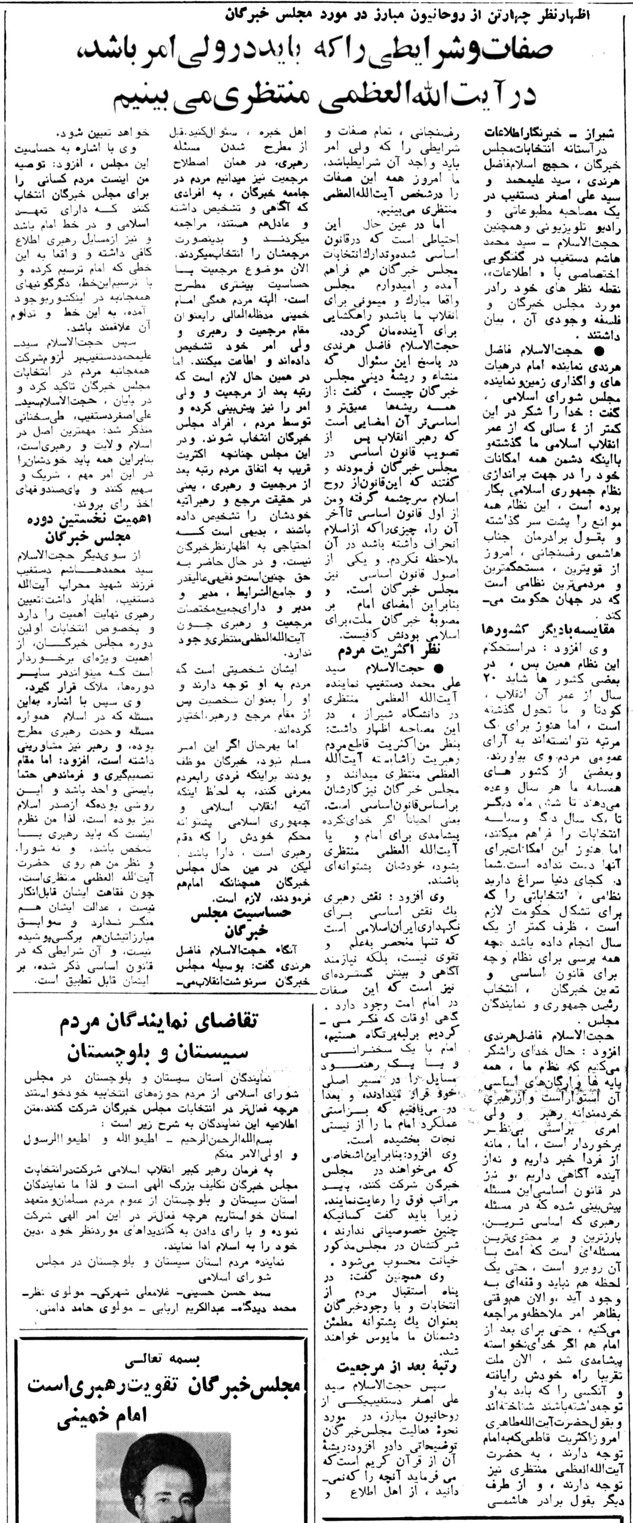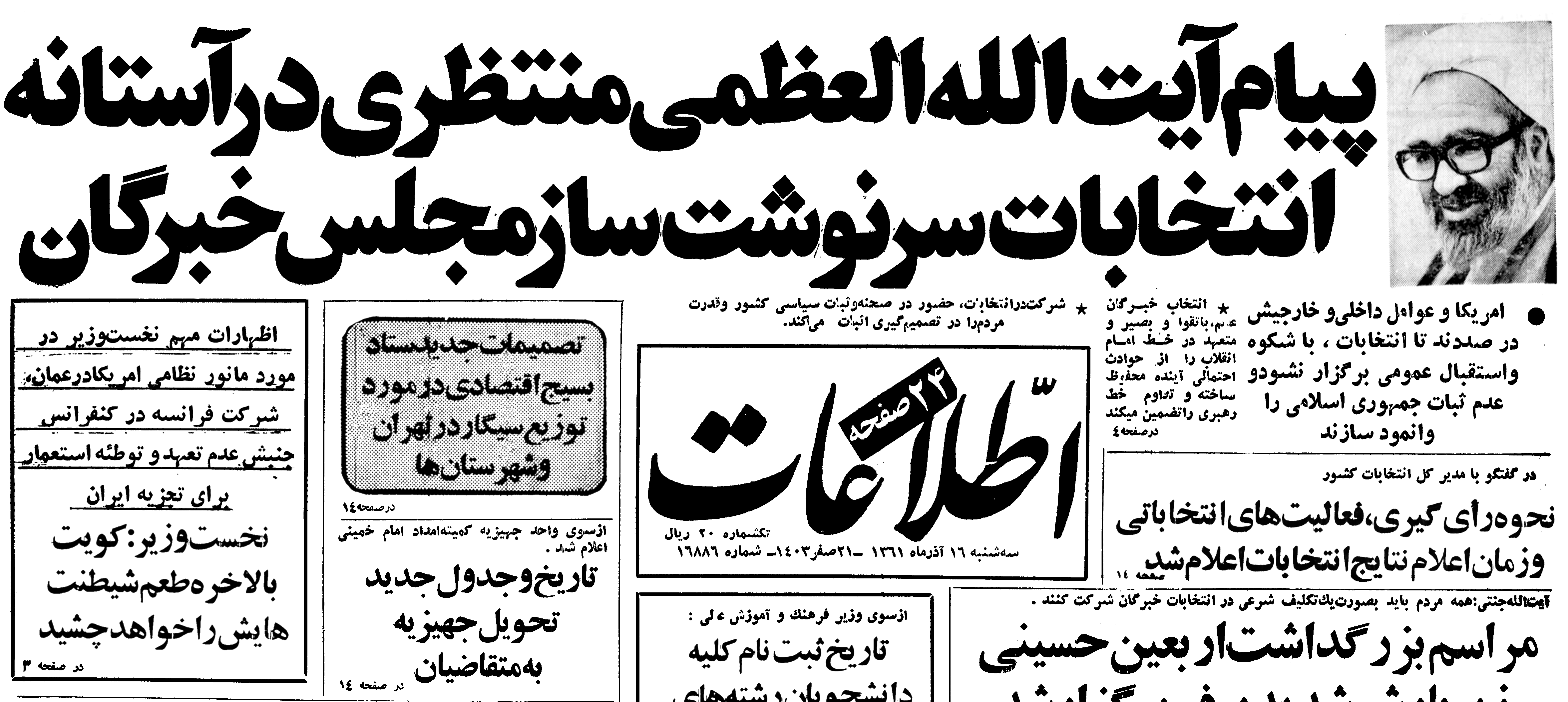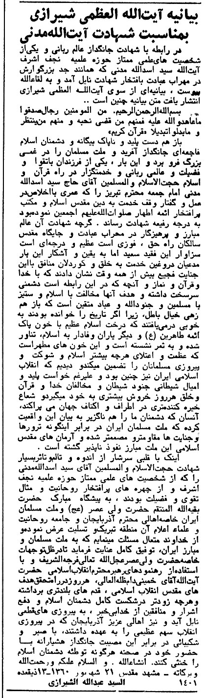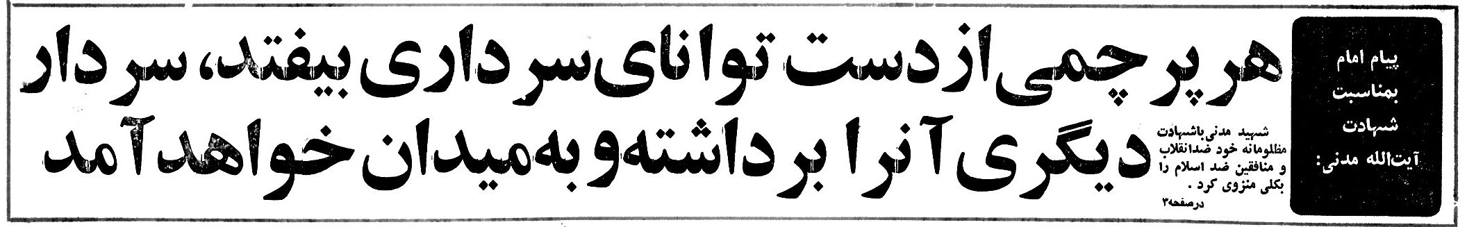 متن این پیام که از روزنامه اطلاعات 22 شهریور 1359 (صفحات 1 و 2) انتخاب شده است را به همراه تصویر سخنرانی اولین رئیس جمهوری اسلامی ایران مندرج در روزنامه انقلاب اسلامی 18 شهریور 1359 ذیلاً ملاحظه خواهید نمود:
