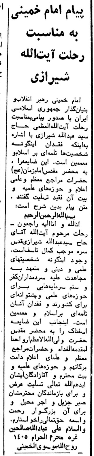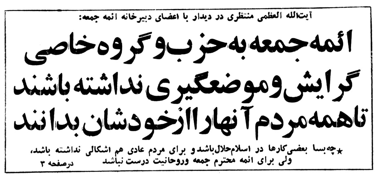 «اگر قاضی نداشتیم، ممکن است از آقای (شیخ علی) تهرانی استفاده کنیم.»
