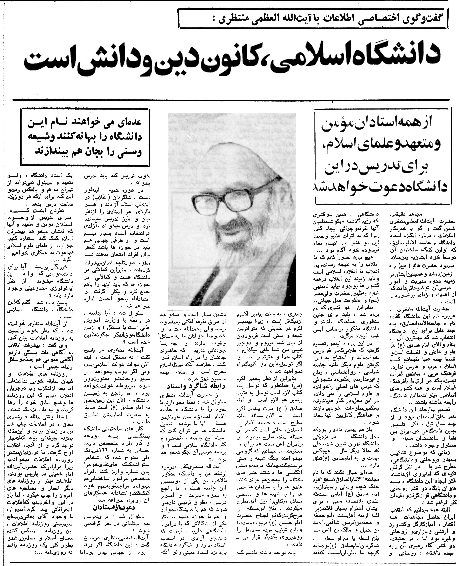 همانگونه که در مطالب گذشته در این وبلاگ و وبلاگ های قبلی که مورد هجمه دشمن قرار گرفته و از بین رفت متذکر شدم، کلنگ تأسیس و احداث جامعةالإمام الصّادق علیه السّلام (دانشگاه امام صادق علیه السّلام) در نیمۀ شعبان 1400(تیرماه 1359) توسط مؤسس و ریاست عالیۀ مادام العمر این دانشگاه، فقیه عالیقدر حضرت آیت اللّه العظمی منتظری (قدّس اللّه نفسه الزّکیّة) در تقاطع خیابان مرحوم آیت الله طالقانی (ره) با ولیّ عصر (عج) بر زمین زده شد (البته بعد از بازگشایی این دانشگاه محل آن به بزرگراه شهید چمران منتقل شد) که خبر آن در روزنامه 8 تیرماه 1359 منتشر گردید.