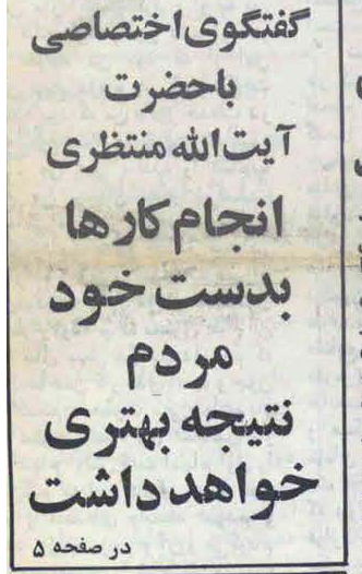 در بهمن ماه 1358، روزنامه انقلاب اسلامی طی مصاحبه ای اختصاصی با فقیه عالیقدر حضرت آیت الله العظمی منتظری (رضوان الله تعالی علیه) مبادرت به درج دیدگاههای مختلف معظّم له پرداخت.