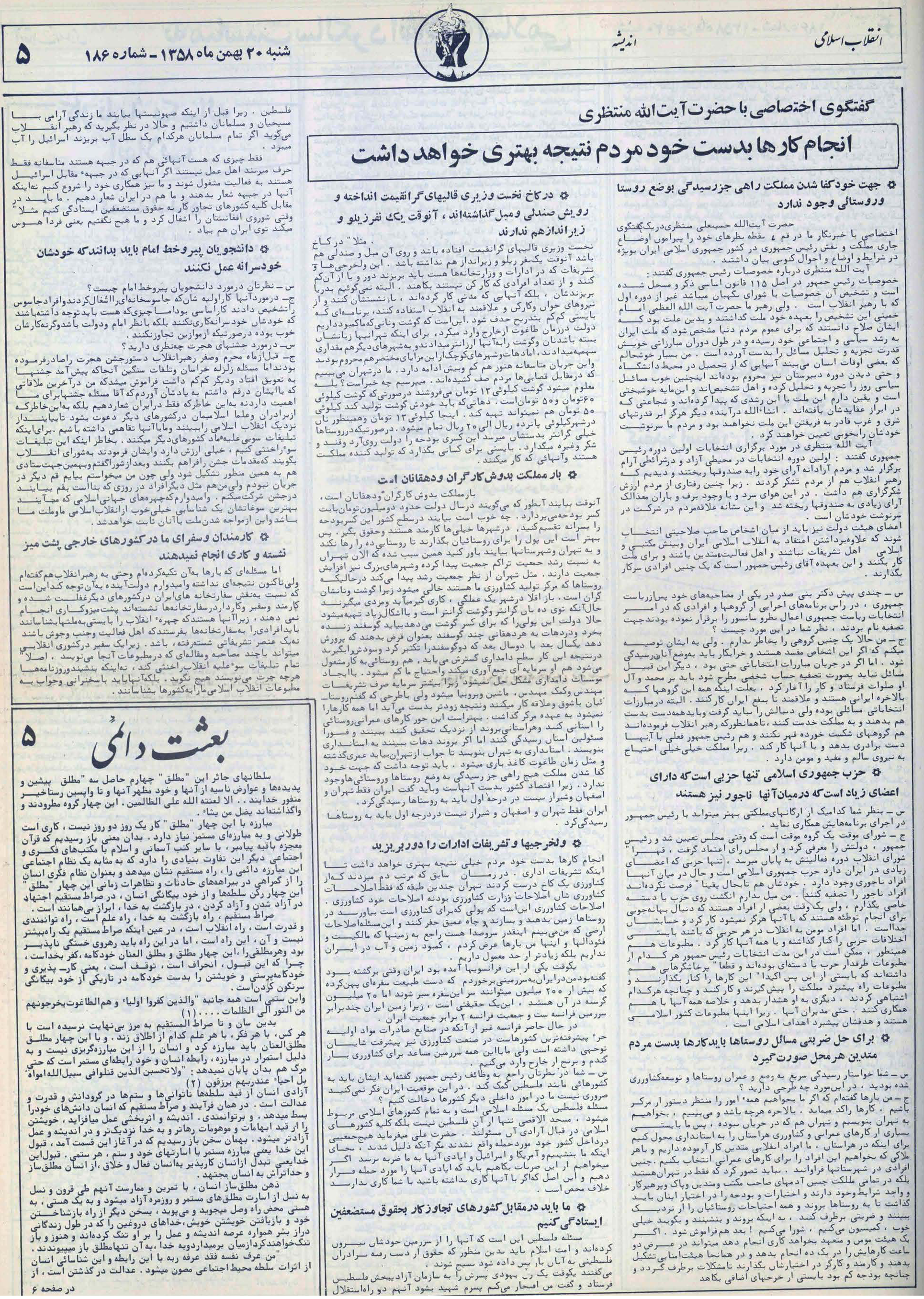 روزنامه انقلاب اسلامی، 20 بهمن 1358 صفحات 1 و 5