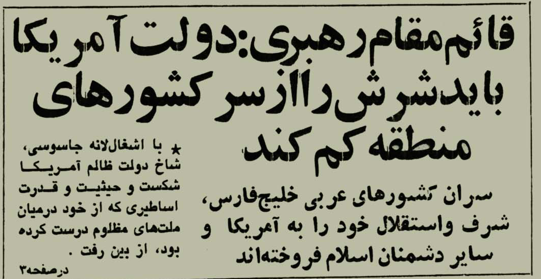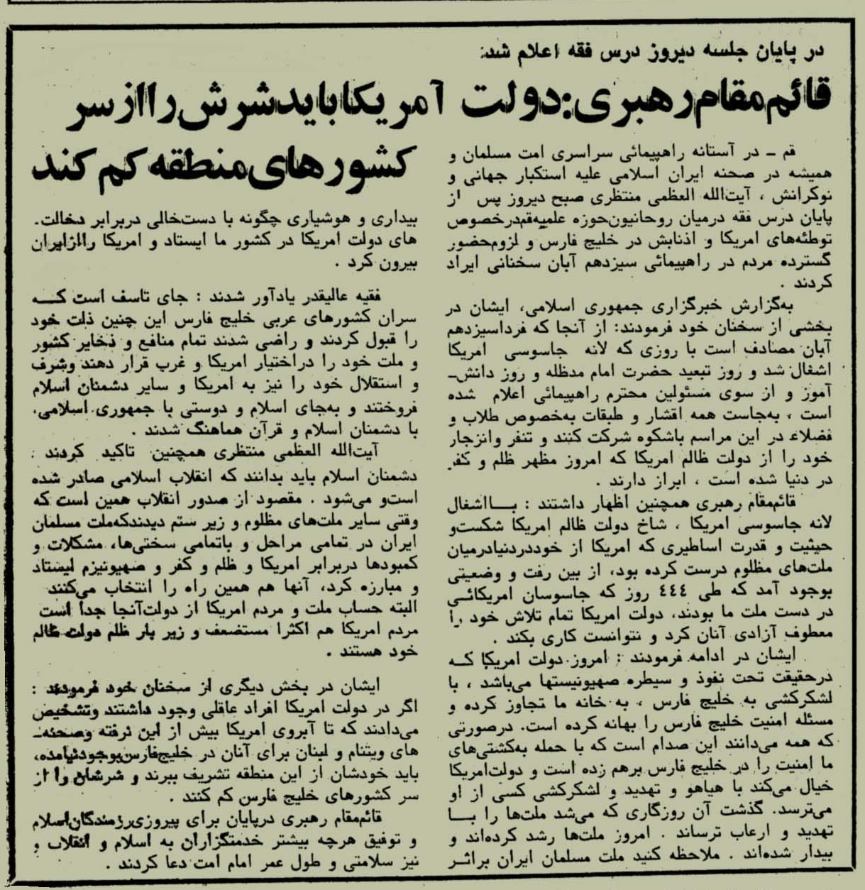 ــ دولت آمریکا امروز مظهر ظلم و کفر در دنیای کنونی، شده است.