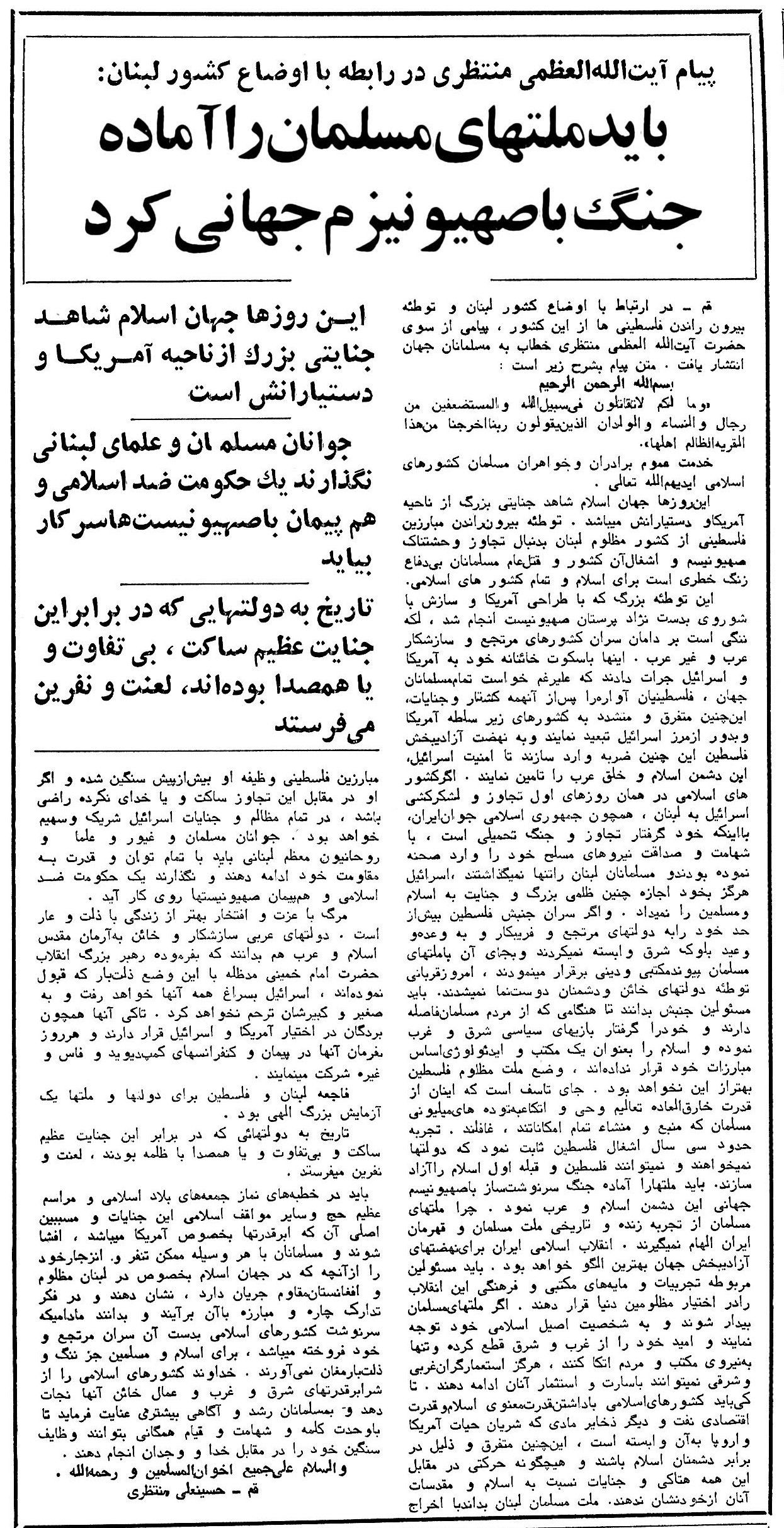 روزنامه اطلاعات دوم شهریورماه 1361 صفحات 1 و 4