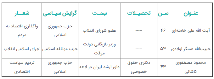 آراءنامزدهای این دوره به ترتیب عبارت بود از: