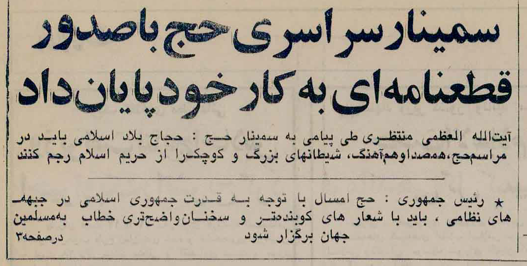 فقیه عالیقدر حضرت آیةالله العظمی منتظری رضوان الله تعالی علیه بمناسبت برگزاری سمینار حج که در تیرماه ۱۳۶۵ برگزار شد، پیام مبسوطی صادر کرده و از جمله فرمودند: