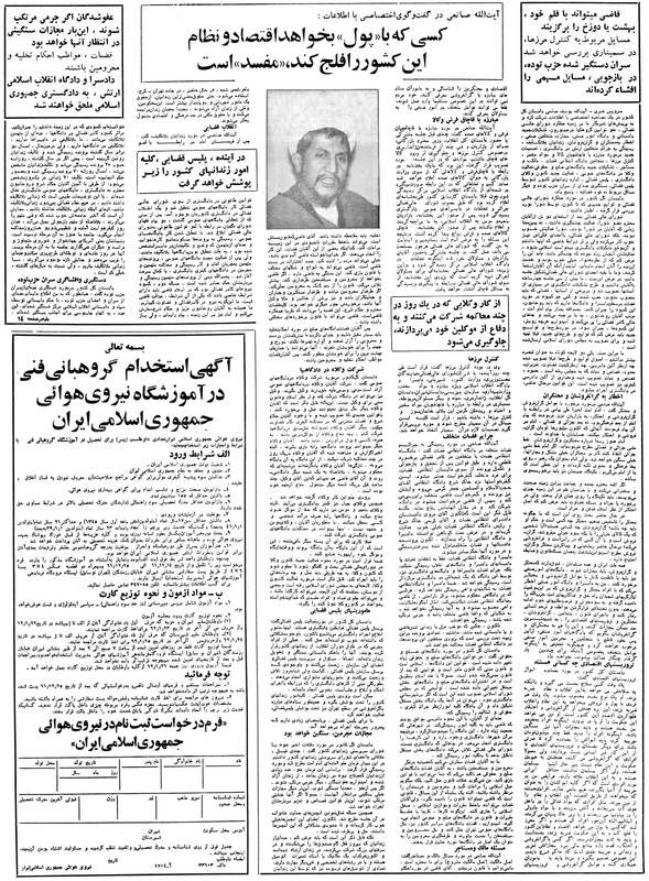 روزنامه اطلاعات ۱۹ اسفندماه ۱۳۶۱ صفحات ۱، ۱۱ و ۱۴