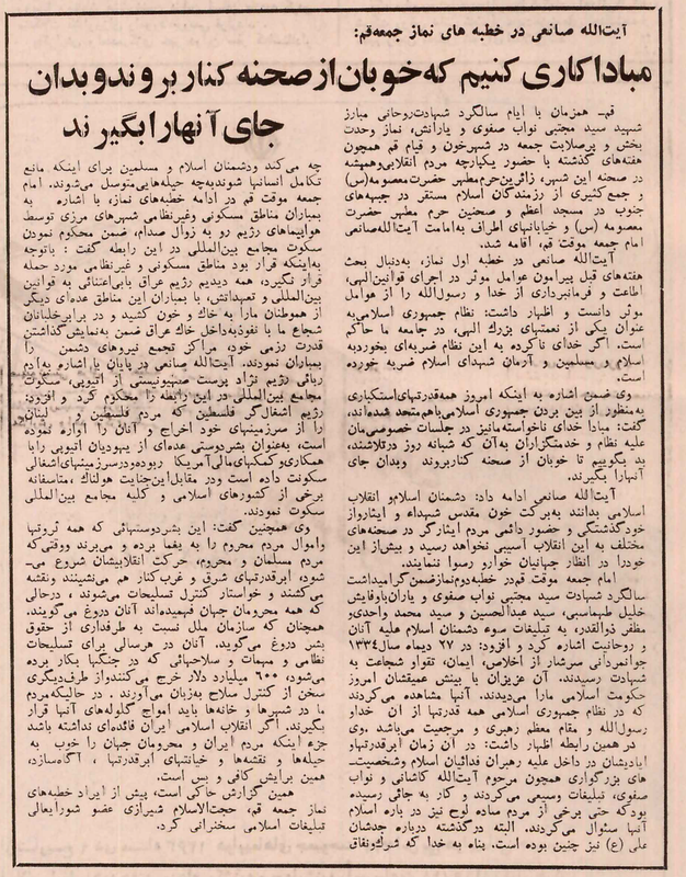 به نقل از روزنامه اطلاعات ۲۹ دیماه ۱۳۶۳ صفحه ۳