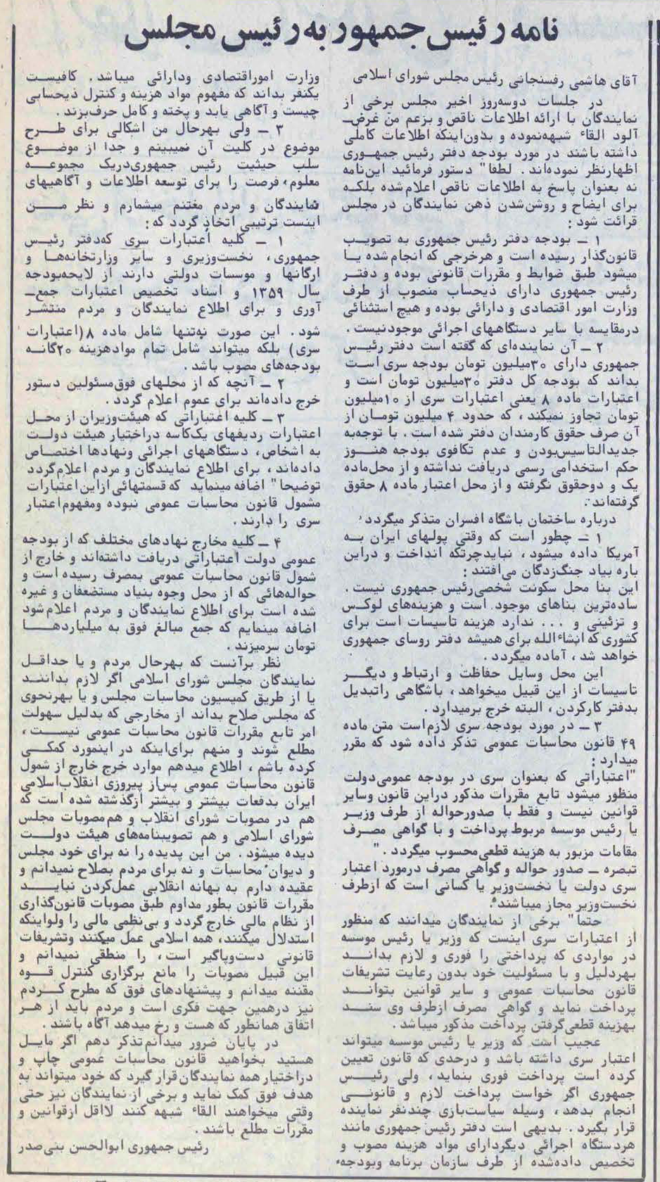 به نقل از روزنامه انقلاب اسلامی مورخ ۲۵ فروردین ماه ۱۳۶۰ صفحات ۱ و ۲