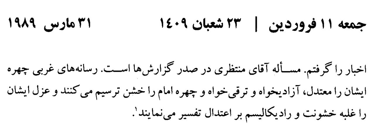 همچنین فقیه عالیقدر حضرت آیةالله العظمی منتظری (قدّسالله نفسه الزّکیّة) در ابتدای درس خارج فقه خود ضمن تشریح ماهیّت جنایتکارانه خودفرختگان شرق و غرب بیان کردند: