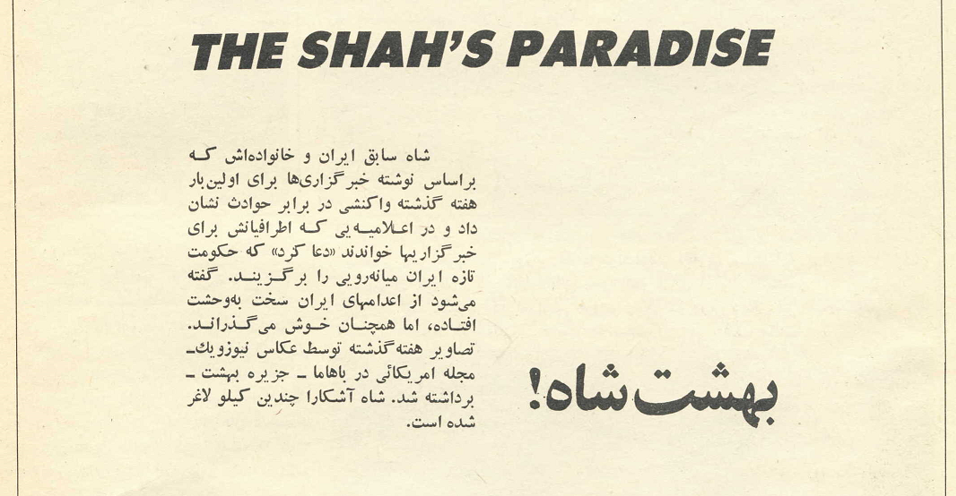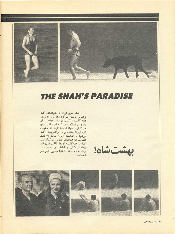 هقته نامه تهران مصور در صفحه ۱۰ شماره ۳۱ فروردین ماه ۱۳۵۸ خود ضمن درج تصویری از شاه و فرح در «جزیره بهشت» که در نشریه نیوزویک چاپ آمریکا به چاپ رسیده است، نوشت: