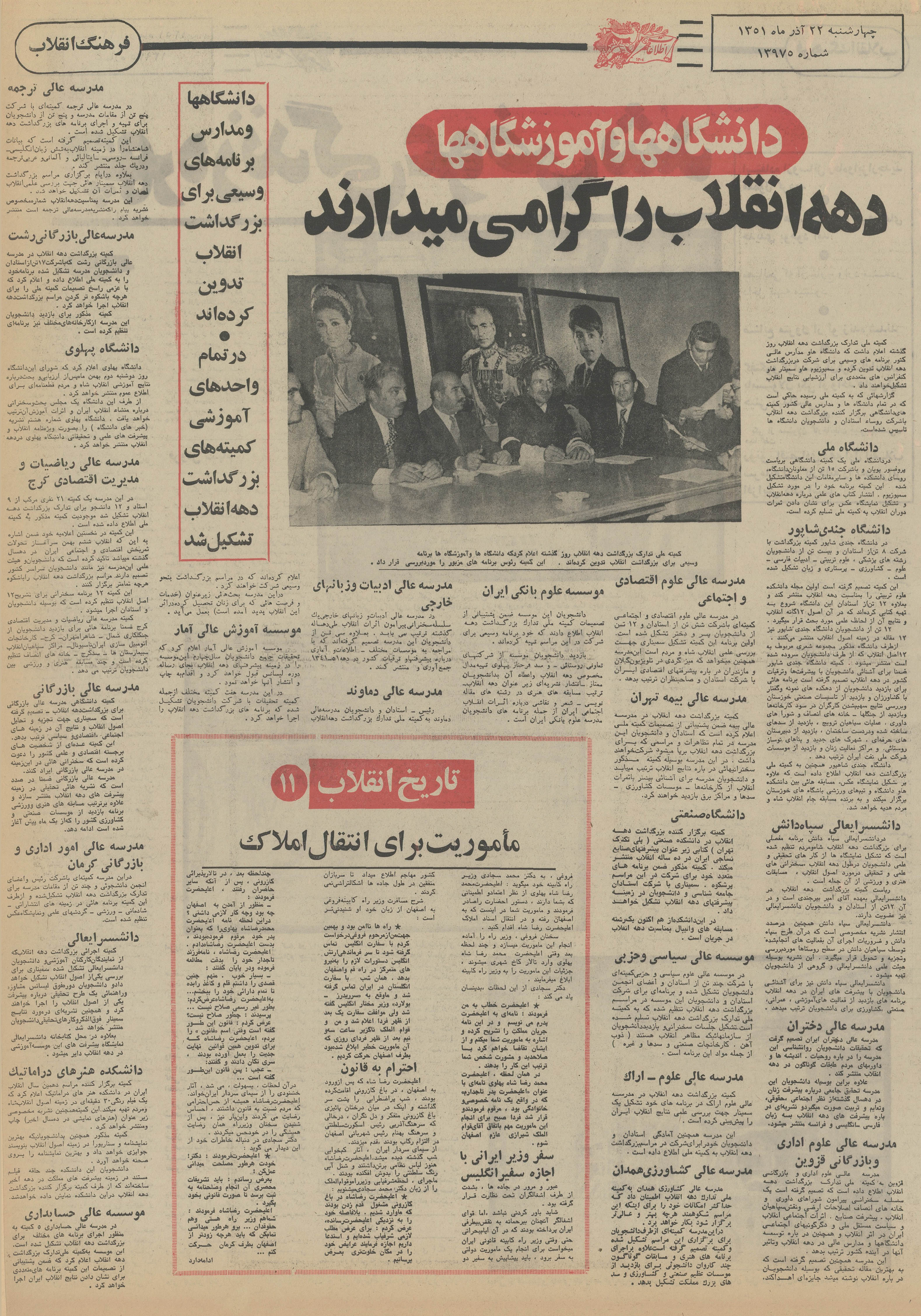 ذیلاً یک صفحه از مطلب مذکور که در صفحۀ 9 روزنامه اطلاعات مورخ 22 آذرماه 1351 با عنوان «دانشگاهها و آموزشگاهها دهۀ انقلاب را گرامی می دارند» درج شده است را ملاحظه خواهید کرد به امید آنکه امید امورد توجّه محقّقین و پژوهشگران مسائل تاریخی قرار گیرد.