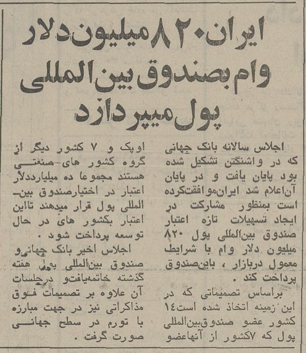 به نقل از روزنامه اطلاعات مورخ ۱۸ مهرماه ۱۳۵۶ صفحه ۲۸