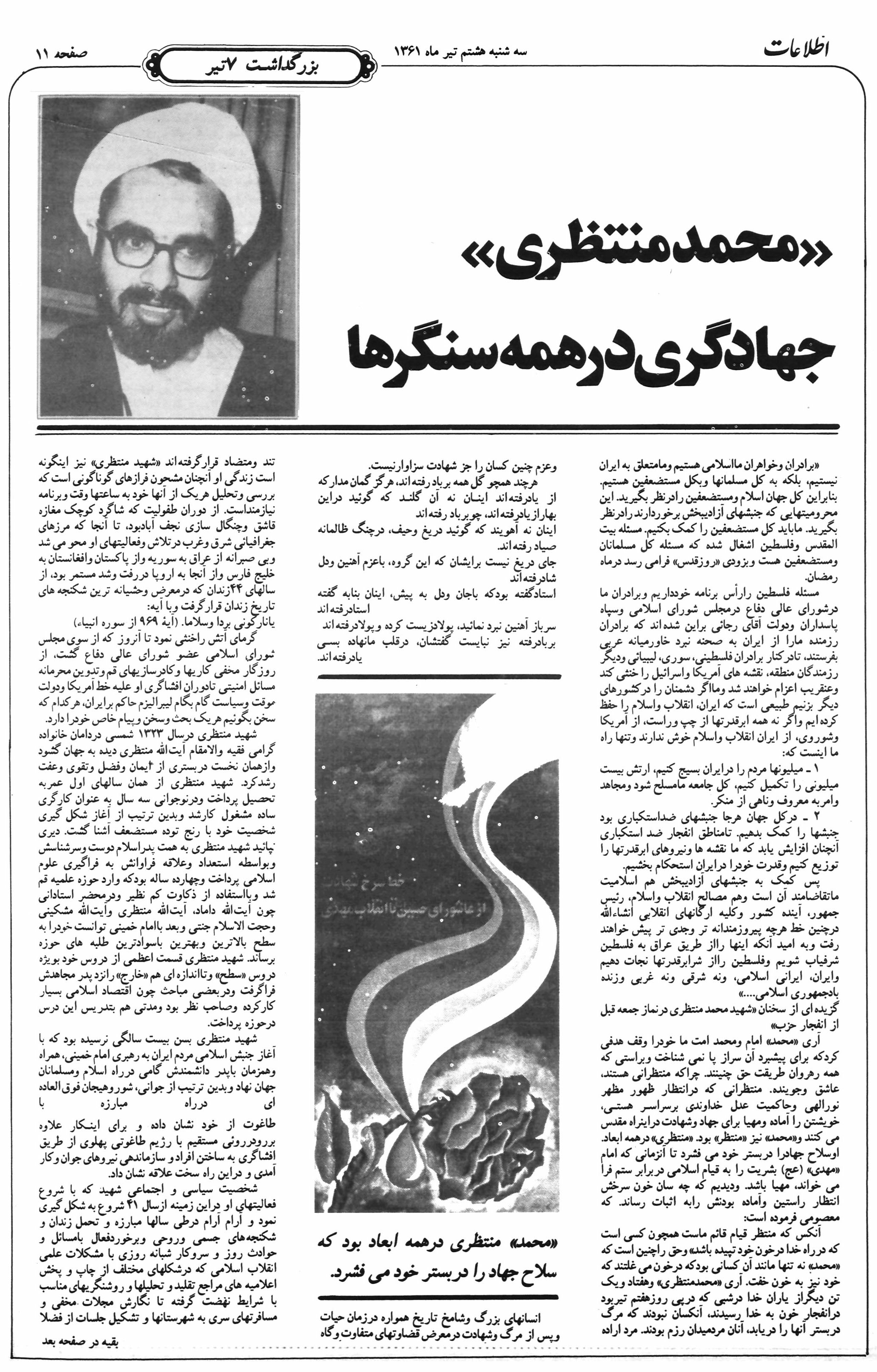 روزنامه اطلاعات مورخ ۱۱ دیماه ۱۳۵۸ صفحه ۱ و ۸