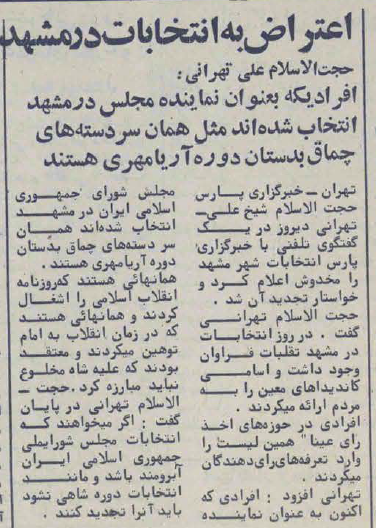 بدری سادات حسینی خامنه ای (خواهر آیةالله خامنه ای و همسر شیخ علی تهرانی) در تاریخ 14 خرداد 1359 نامه ای خطاب به رئیس جمهور وقت ایران دکتر سید ابوالحسن بنی صدر نوشت که روزنامه انقلاب اسلامی آن را در صفحۀ دوم اول تیرماه 1359 خود به چاپ رسانید که ذیلاً ملاحظه می کنید:
