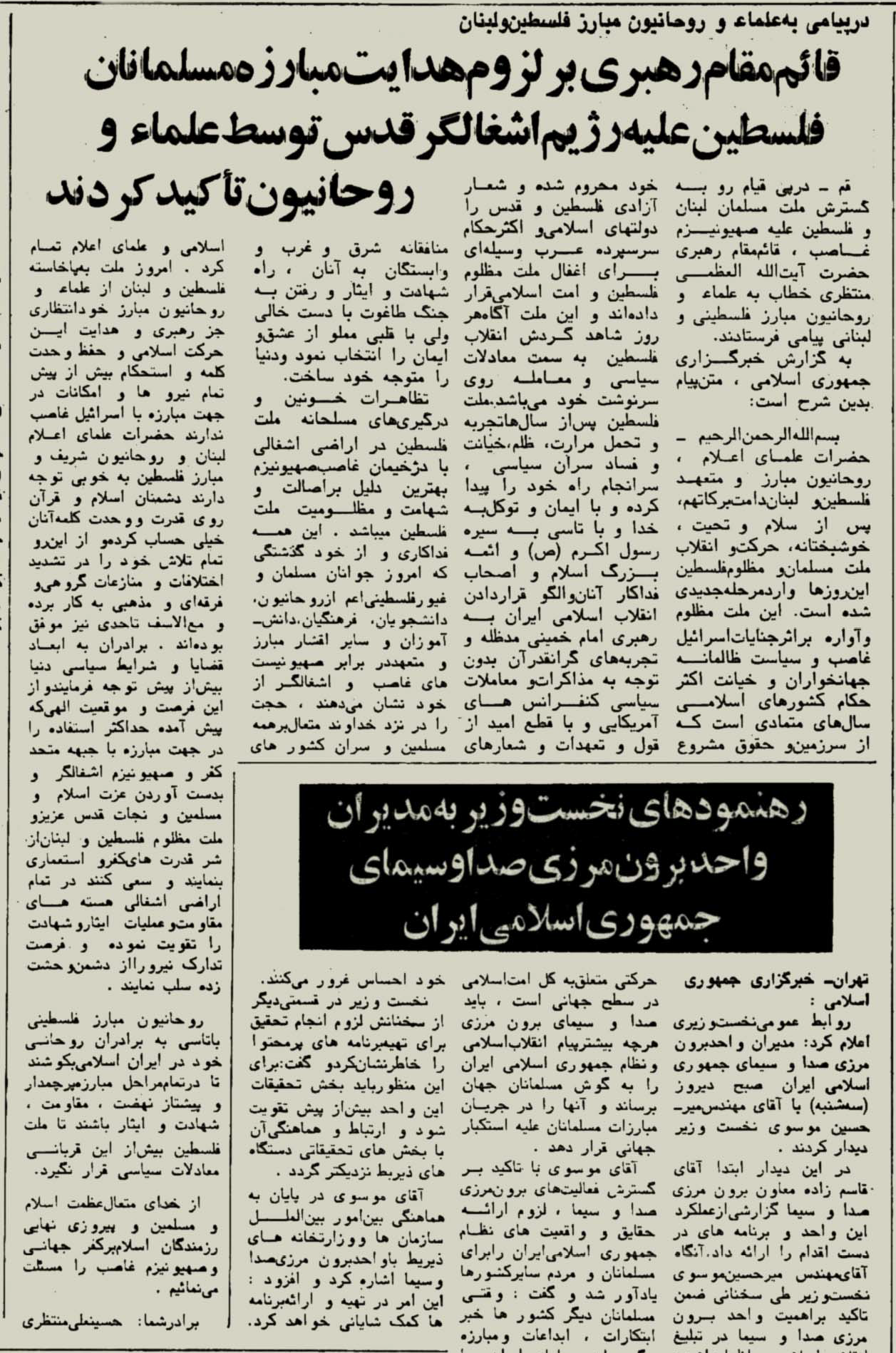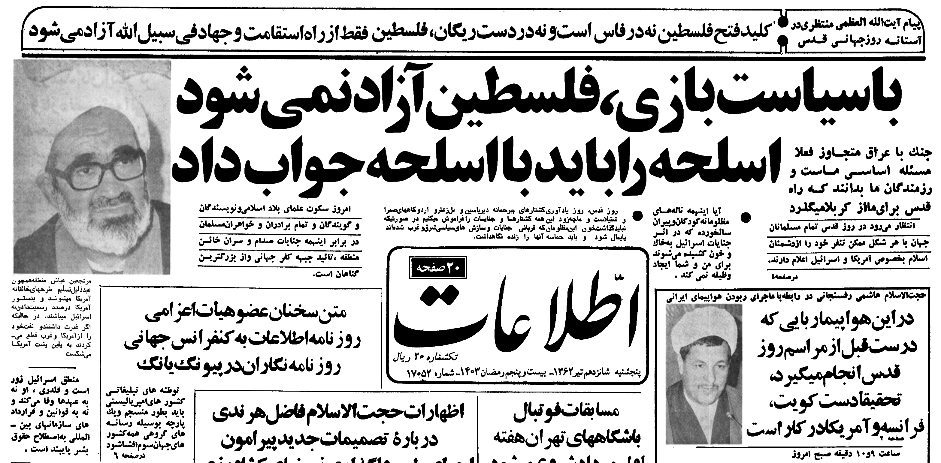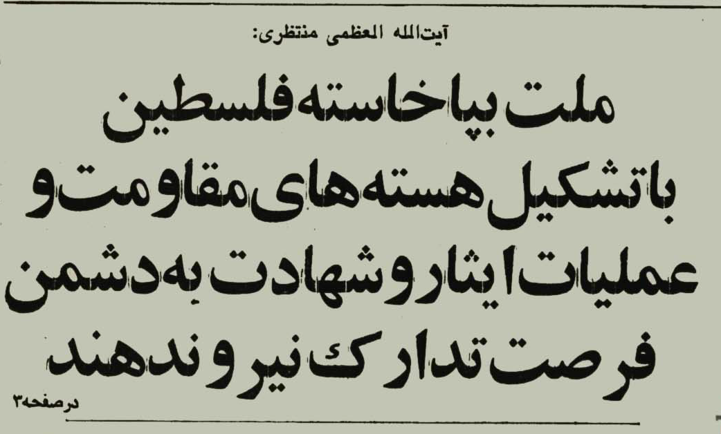 ــ کلید فتح فلسطین نه در فاس است و نه در دست ریگان، فلسطین فقط از راه استقامت و جهاد فی سبیل الله آزاد می شود.